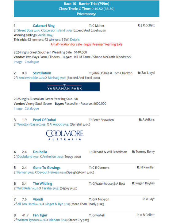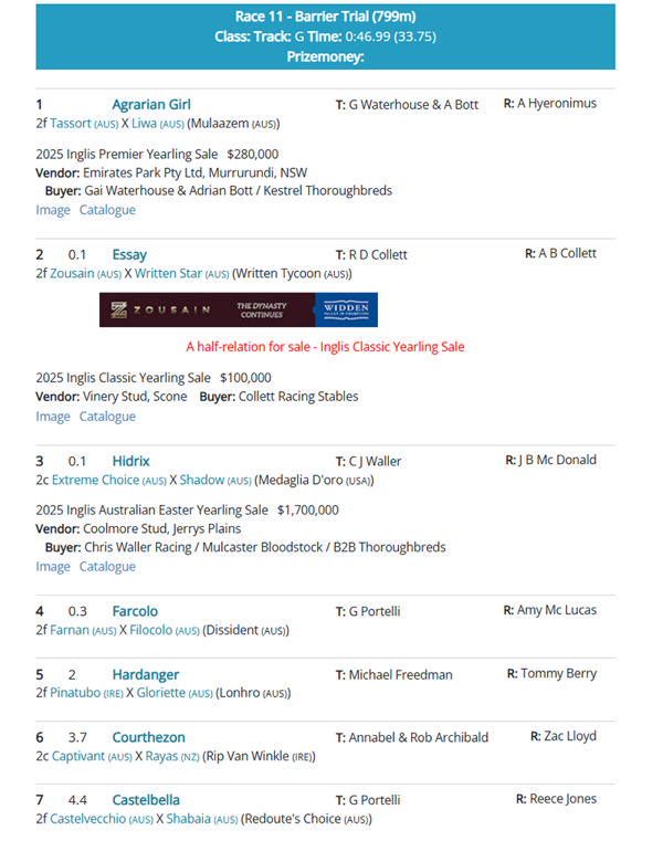 Click here for all the trial results at Breednet with Sale Mail and at Racing NSW with video.