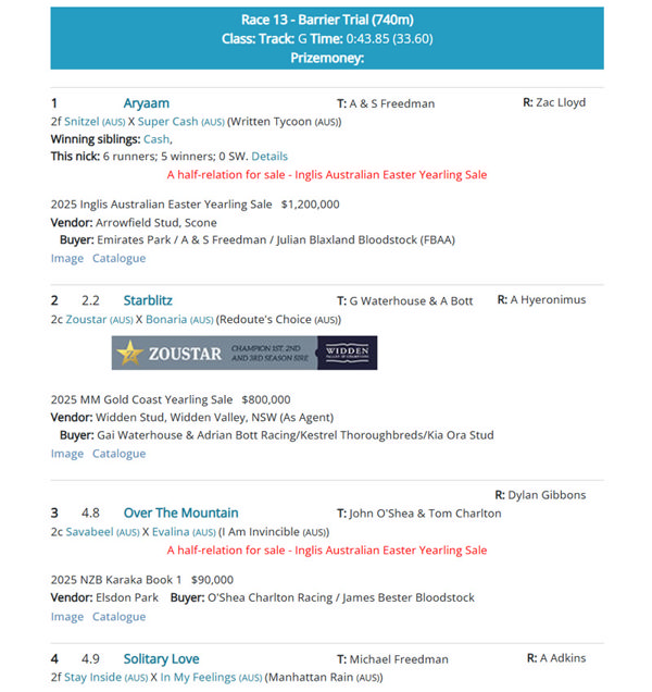 Click here for all the results at Breednet with Sale Mail and at Racing NSW with video.