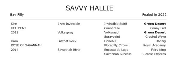 Bred by Gerry Harvey, Savvy Hallie is the second foal from Rose of Savannah, a winner herself by the incomparable Fastnet Rock.
