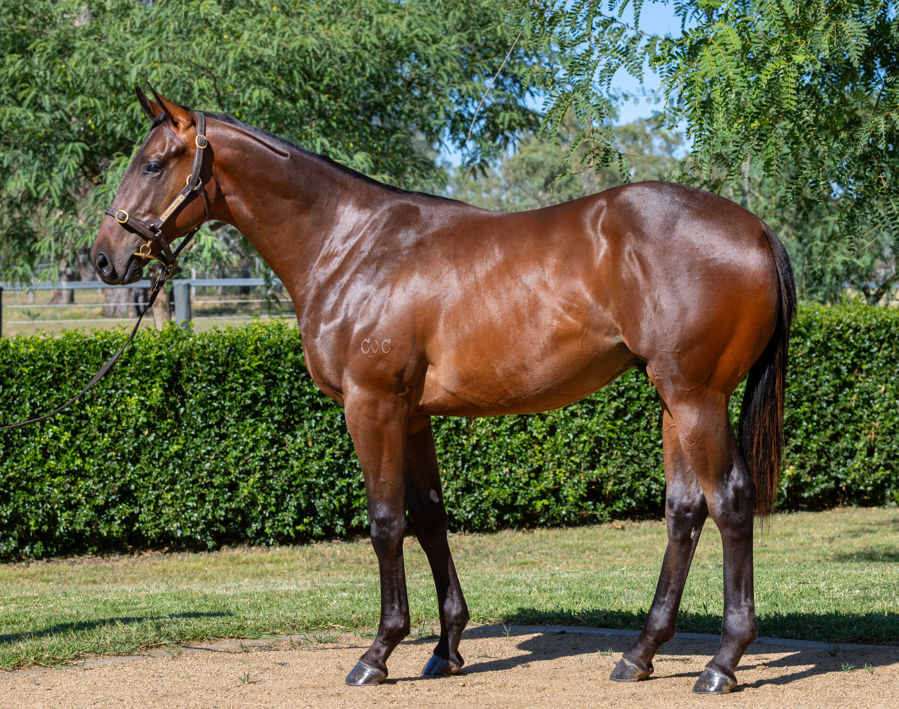 First foal out of talented Group 3 winning WRITTEN TYCOON race mare TYCOON EVIE, by 9 x time Group 1 winning Australian Horse of the year ANAMOE. The Redoute’s Choice/Written Tycoon nick has produced 42 x individual Stakes Winners and 6 x Group 1 winners
